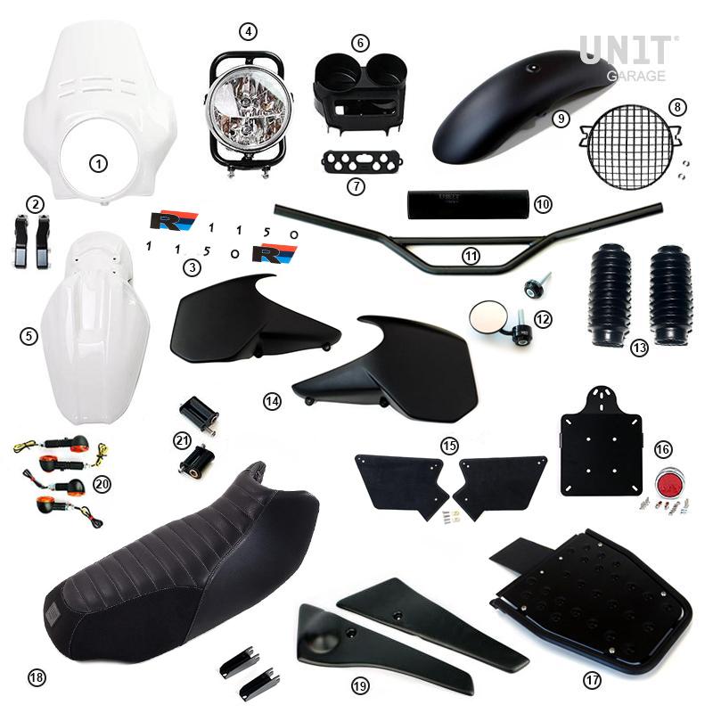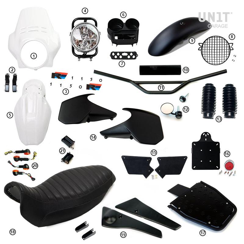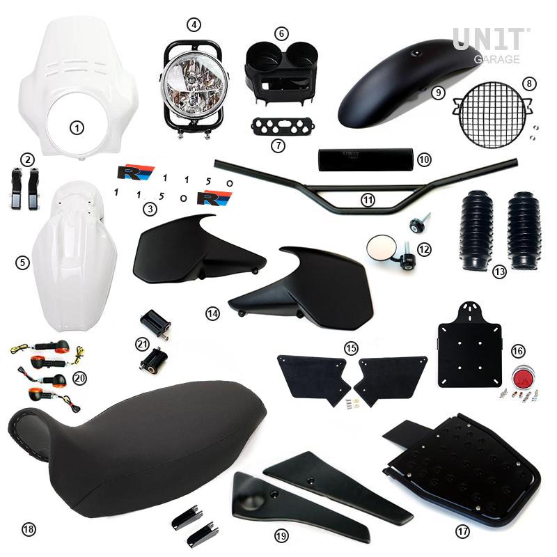 Retoma el aspecto de la legendaria R80 GS PD adaptada y revisada para nuestros KIT. Muy ligero, con acabado Alpinewhite o Matt Black o Red. Tiene una buena protección aerodinámica y viene completo con soportes de fijación.