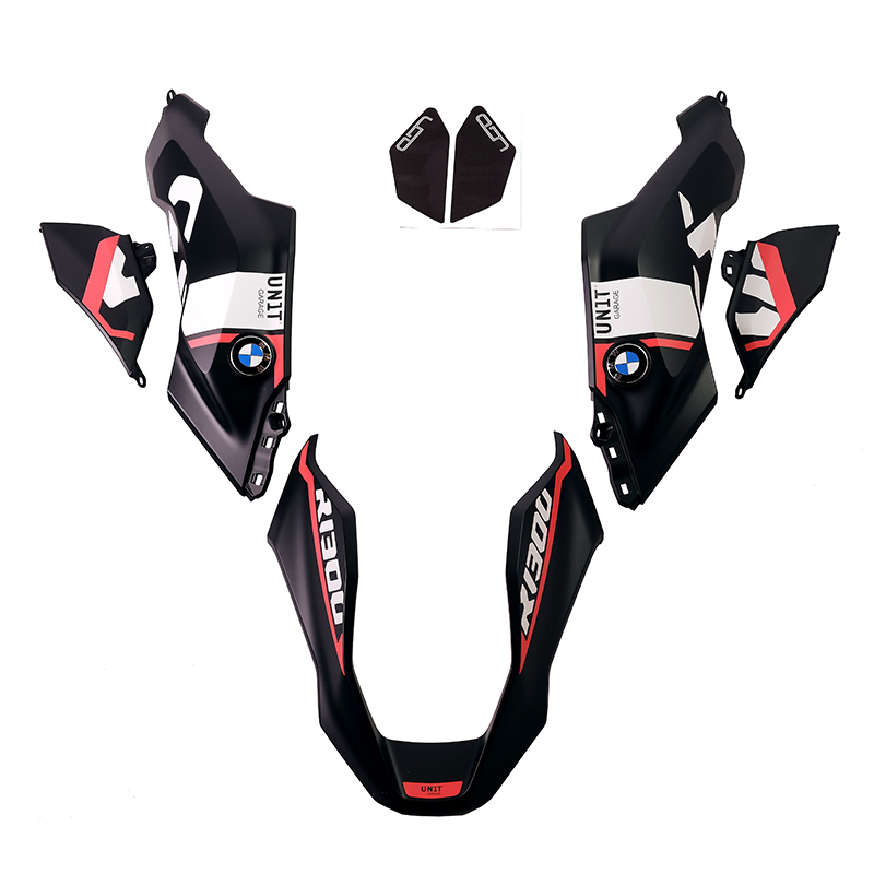 Compatible con todos los modelos BMW R1300GS fabricados a partir de 2023, el Kit sustituye todas las piezas de plástico de la moto original. Completo con gráficas protegidas con pintura transparente de alta calidad, le dan a la moto un aspecto fantástico sin tener que modificar nada, todo es completamente reversible. Se montan muy rápidamente, recibirás todo lo necesario para el montaje, en media hora cambiarás el aspecto de tu GS y los plásticos con el color original estarán seguros en tu garaje.