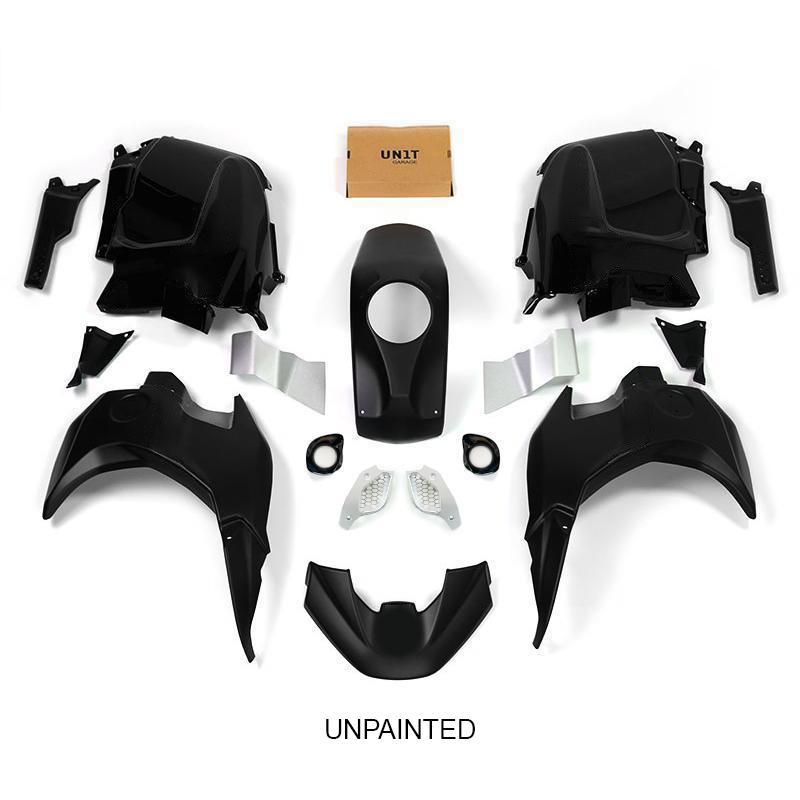 Rediseña toda la parte delantera de la bicicleta haciéndola más estrecha y cónica. En los laterales se encuentra la carcasa del logo original de la R1200 GS que se puede quitar de tu moto. Se proporcionan dos pegatinas troqueladas para sustituir las de los logotipos que vayas a desmontar.