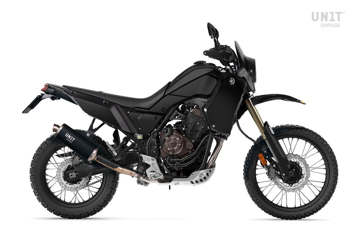 Las piezas de recambio del kit pesan aproximadamente 4,5 kg menos que las originales y proceden de componentes que se encuentran delante del manillar de la Ténéré de serie. Es por este motivo que la moto equipada es más fácil de manejar que el modelo estándar. Se vuelve mucho más "de carrera" y manejable todoterreno... ¡parece otra motocicleta! Tras unas 4 horas de montaje del KIT habrás revolucionado el aspecto de tu moto, haciéndola única, sin modificar nada de las piezas originales. El kit es compatible con todos los modelos Ténéré 700 (no World Raid). En cualquier momento podrás restaurar tu bicicleta a su configuración original. Naturalmente, además del KIT básico, tendrás la posibilidad de implementar tu Ténéré con otros accesorios visibles en PIEZAS ESPECIALES o en el CONFIGURADOR. Equipado con neumáticos con tacos, no encontrará obstáculos ni siquiera fuera de la carretera, además porque las preciosas piezas originales están seguras en su garaje.