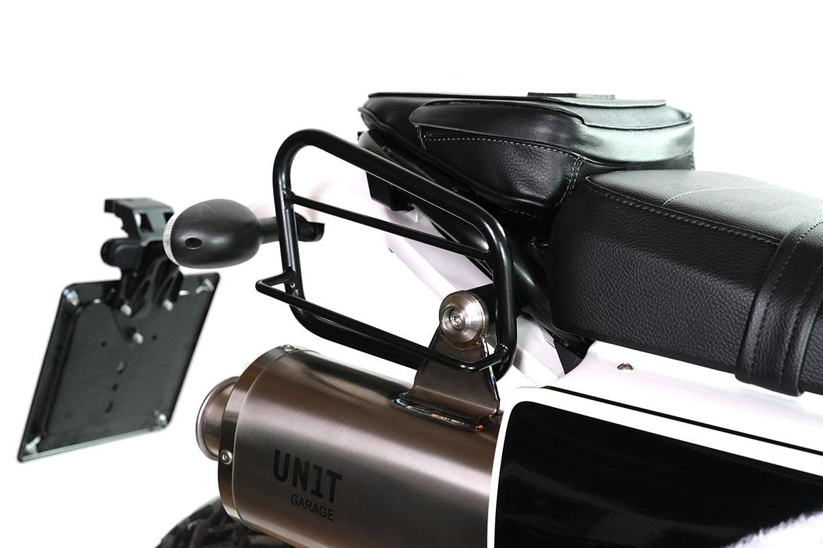 Portaequipajes lateral para Fuoriluogo Kit fabricado en tubo de acero con acabado en polvo epoxi negro mate. Completa la parte trasera, ideal como agarradera para el pasajero. Se fija de forma muy sencilla al bastidor y es muy práctico para acoplar cámaras de aire de repuesto o rollos de herramientas. NB: las 2 bandas de cuero para fijar objetos en el portaequipajes o en la bolsa de herramientas no están incluidas y se pueden comprar por separado (disponibles en negro o marrón).