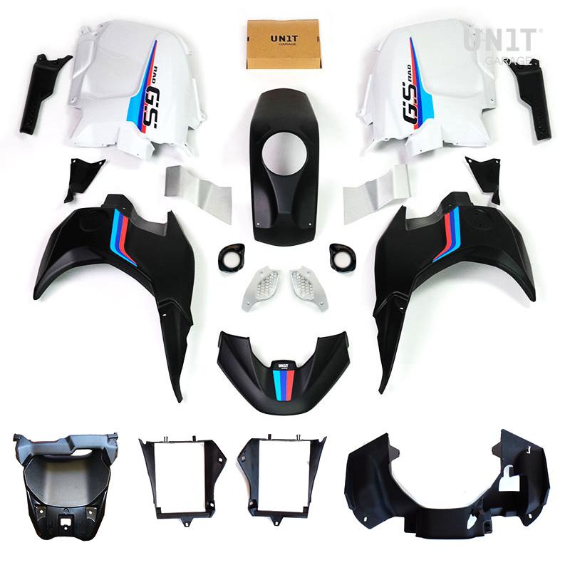 Rediseña toda la parte delantera de la bicicleta haciéndola más estrecha y cónica. En los laterales se encuentra la carcasa del logo original de la R1200 GS que se puede quitar de tu moto. Se proporcionan dos pegatinas troqueladas para sustituir las de los logotipos que vayas a desmontar.