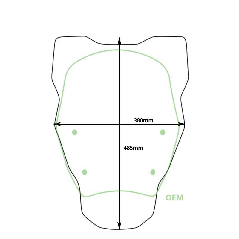 Parabrisas diseñado para montarse sin ninguna modificación reutilizando soportes y tornillos originales.