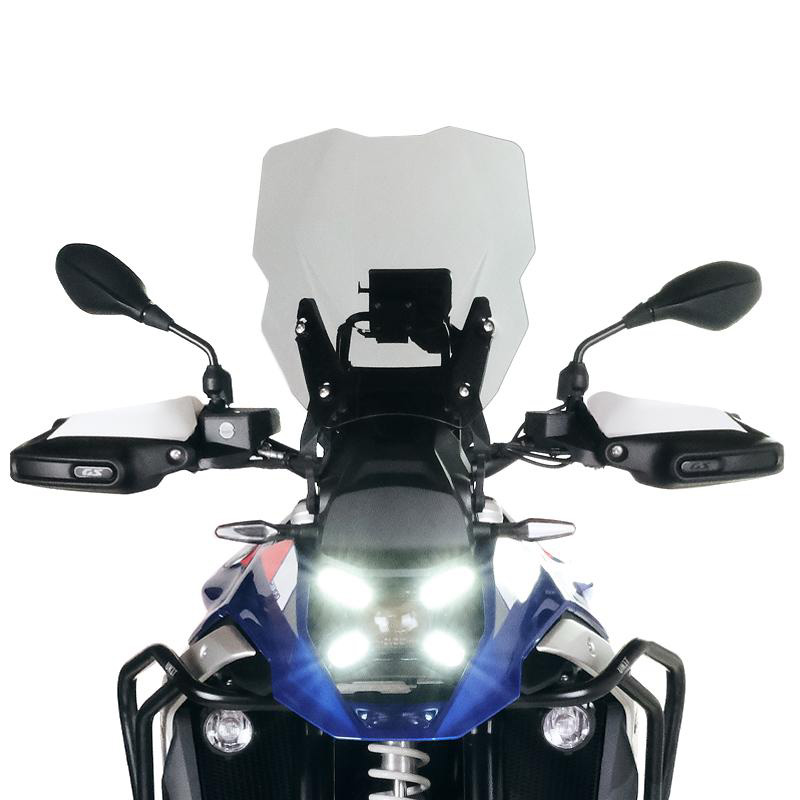 El parabrisas es un apéndice absolutamente personal y lo hemos desarrollado en diferentes formas, tamaños y transparencias, cada una adecuada a diferentes alturas y expectativas. La pantalla XL (puedes encontrar las medidas totales y la diferencia con la original en las fotos), se ajusta como la original en dos posiciones, y ofrece una protección óptima para cada tipo de altura eliminando las molestas turbulencias, tu GS quedará uniforme. ¡Más ergonómico!