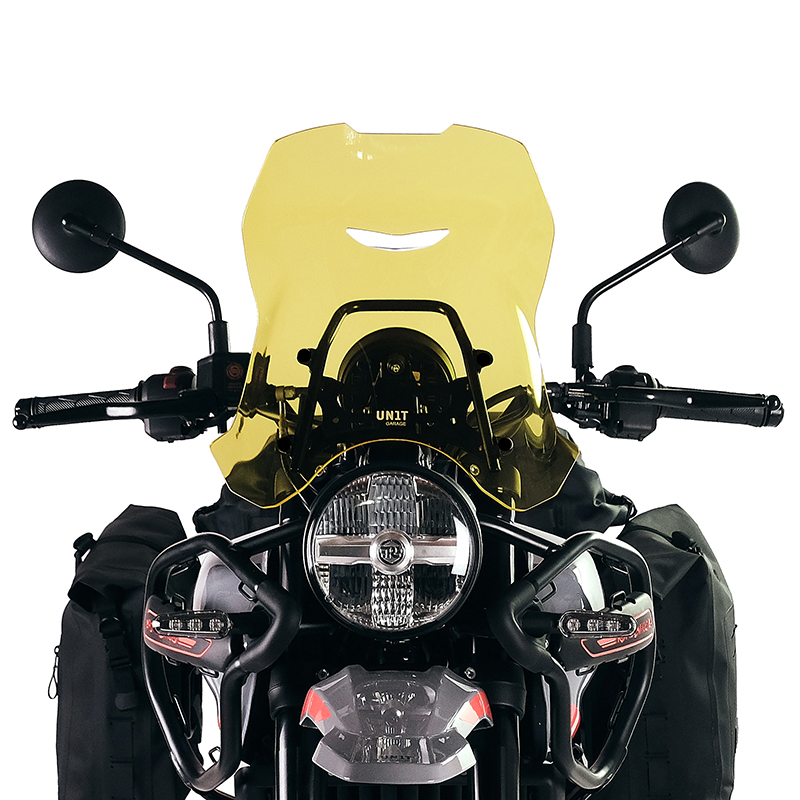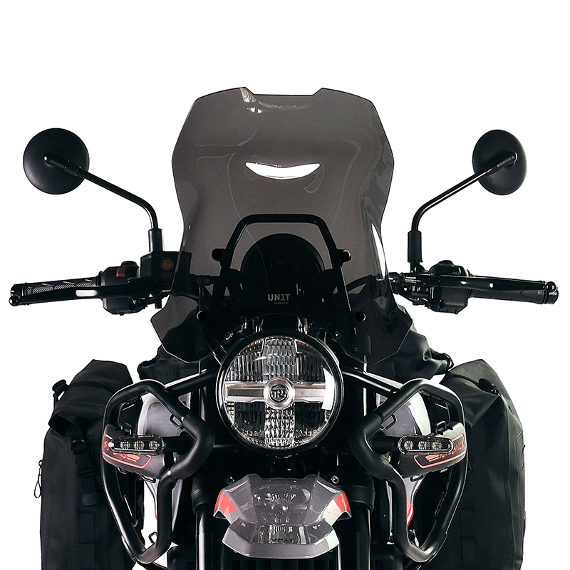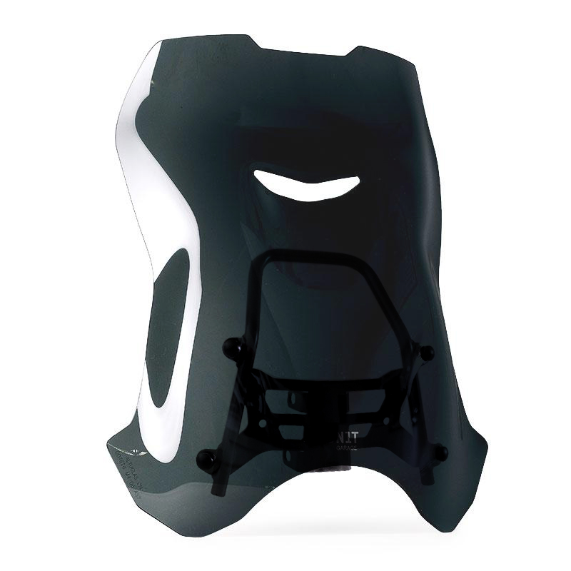 En esta versión más grande, hemos mejorado aún más la protección aerodinámica. Incluye un nuevo soporte y herrajes, que complementa a la perfección la parte delantera. Fabricada en PMMA (acrílico) de 4 mm de espesor, es muy fácil de instalar. La ventilación frontal elimina las turbulencias y el tubo de soporte también sirve como soporte para GPS o teléfono móvil.