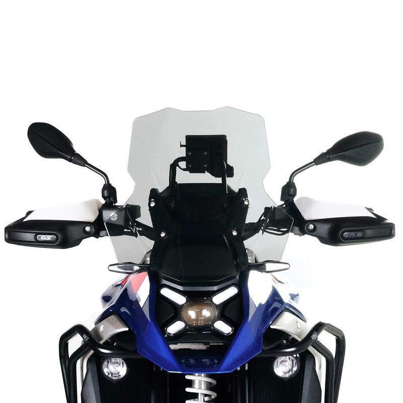 El parabrisas es un apéndice absolutamente personal y lo hemos desarrollado en diferentes formas, tamaños y transparencias, cada una adecuada a diferentes alturas y expectativas. La pantalla XL (puedes encontrar las medidas totales y la diferencia con la original en las fotos), se ajusta como la original en dos posiciones, y ofrece una protección óptima para cada tipo de altura eliminando las molestas turbulencias, tu GS quedará uniforme. ¡Más ergonómico!