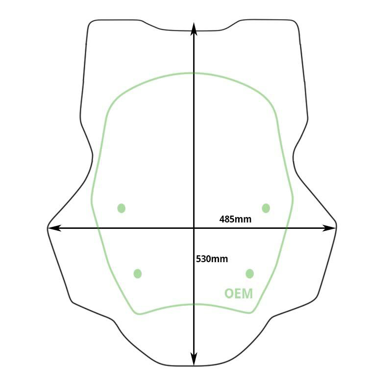 Parabrisas diseñado para montarse sin ninguna modificación reutilizando los soportes y tornillos originales.