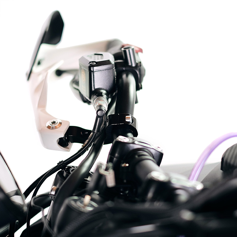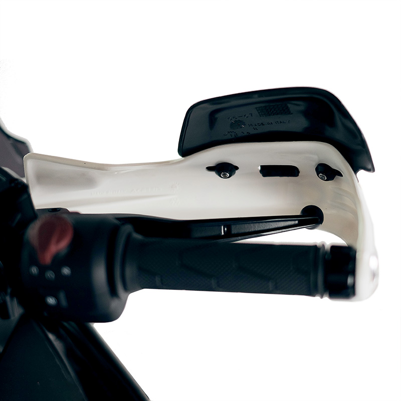 Paramanos clásicos de Rally y pulseras anticorodal para la fijación del paramanos al manillar, con soporte dedicado.