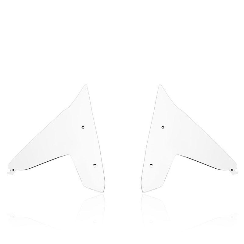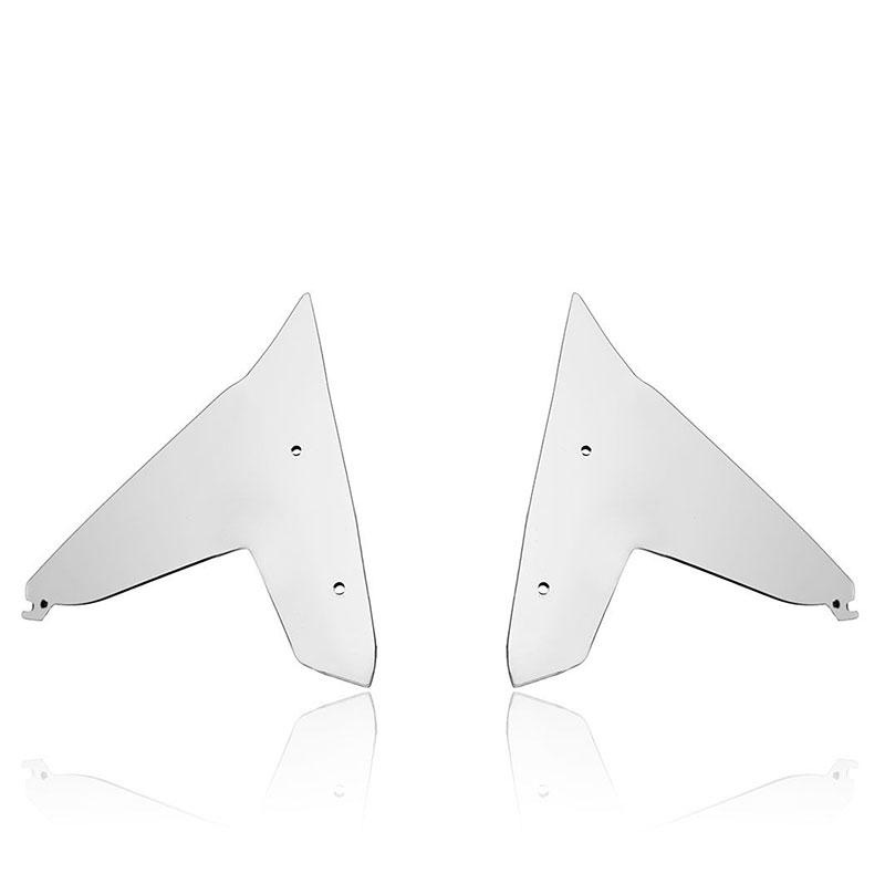 Deflectores fabricados con materiales de alta calidad, de 4 mm de espesor como el original. Fabricado siguiendo las más estrictas normas de seguridad y respetando el saber hacer que garantiza la máxima resistencia y transparencia. La instalación de los deflectores laterales mejorará la comodidad de viaje. Gracias a ellos, la presión del aire en hombros y brazos disminuye radicalmente, pudiendo afrontar incluso los itinerarios más largos con la máxima comodidad.