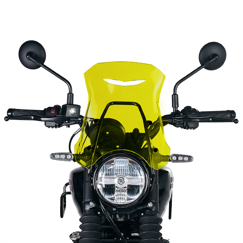 Completo con nuevo soporte y tornillos, combina perfectamente con las líneas del frente. Fabricado en PMMA (Acrílico) de 4mm de espesor. Es muy fácil de montar y ofrece una excelente protección aerodinámica. La ventilación frontal elimina las turbulencias y el tubo de soporte también funciona como soporte para GPS o teléfono celular.