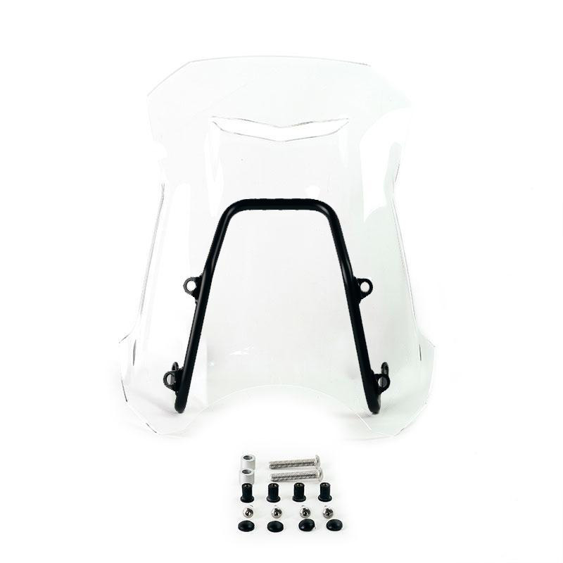 Completo con soportes y tornillos, está perfectamente en estilo con las líneas del frente. Fabricado en PMMA (Acrílico) de 4mm de espesor. Se monta muy fácilmente y ofrece una excelente protección aerodinámica. La persiana frontal elimina las turbulencias y el tubo de soporte también sirve como soporte para GPS.
