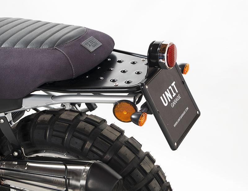 Robusto portaequipajes fabricado en tubo de acero y chapa de aluminio con tacos antideslizantes; tratada con pintura en polvo de alta resistencia en color negro mate. Mucho más compacto que el original, te permite acortar la cola y afina el marco en la parte trasera. Es compatible con nuestros sillines code:1521 y code:1551 en los distintos colores, con el porta matricula alto code:1554 y con el terminal de cuadro code:1552