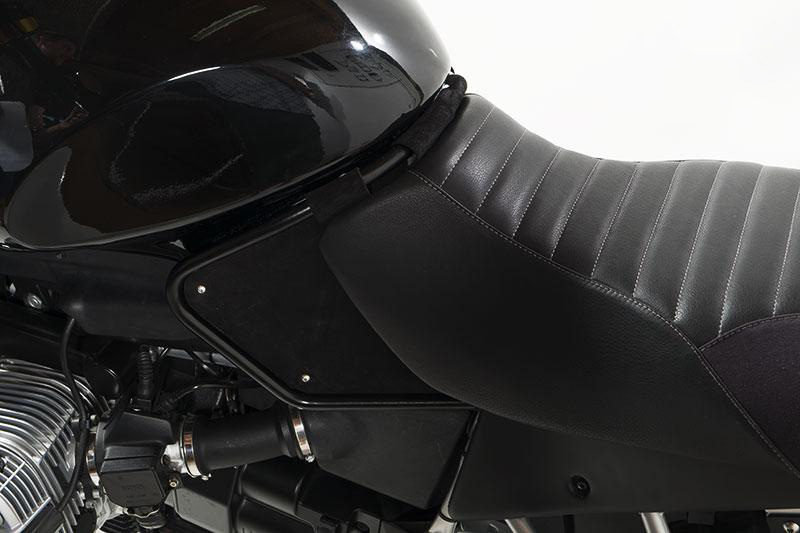El depósito de las R850R y R1100R está recortado en la parte trasera para alojar el asiento original. Al montar un sillín más clásico queda un espacio vacío entre el sillín y el depósito, este problema lo hemos solucionado con: tubo de protección de los laterales del depósito fabricado en acero con acabado en polvo epoxi negro de gran espesor y acabado serraje. Además de reparar la zona del depósito cerca de las rodillas del piloto, le da un aspecto más musculoso a tu R al integrarse perfectamente con las líneas de tu moto. Viene completo con todo lo necesario para la instalación.