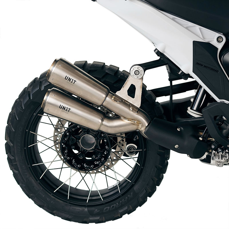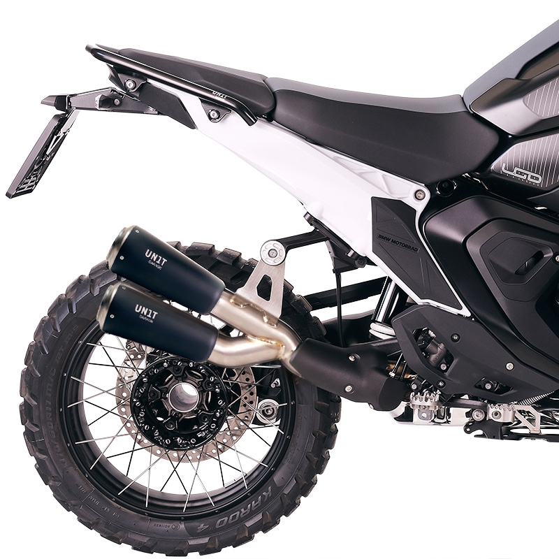 Para la R1300GS ADV queríamos un escape refinado y elegante, pero también potente. Prestaciones y ligereza: sonido profundo en toda la curva de potencia y gran ahorro de peso. Silenciadores homologados fabricados en Titanio con racor de TITANIO. Se puede montar en los colectores originales dejando la válvula de escape y el catalizador de serie, o en nuestros colectores de competición. No requiere reasignación de la ECU ni otras modificaciones. Pesa aproximadamente 0,1 kg menos que el original. Se monta fácilmente en pocos minutos sobre el soporte original y es compatible con todas las maletas originales o aftermarket. El sonido te volverá loco y la entrega... ¡también!