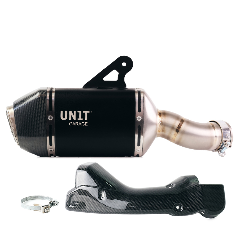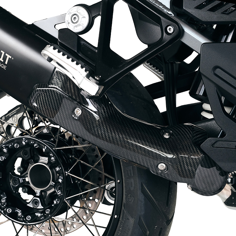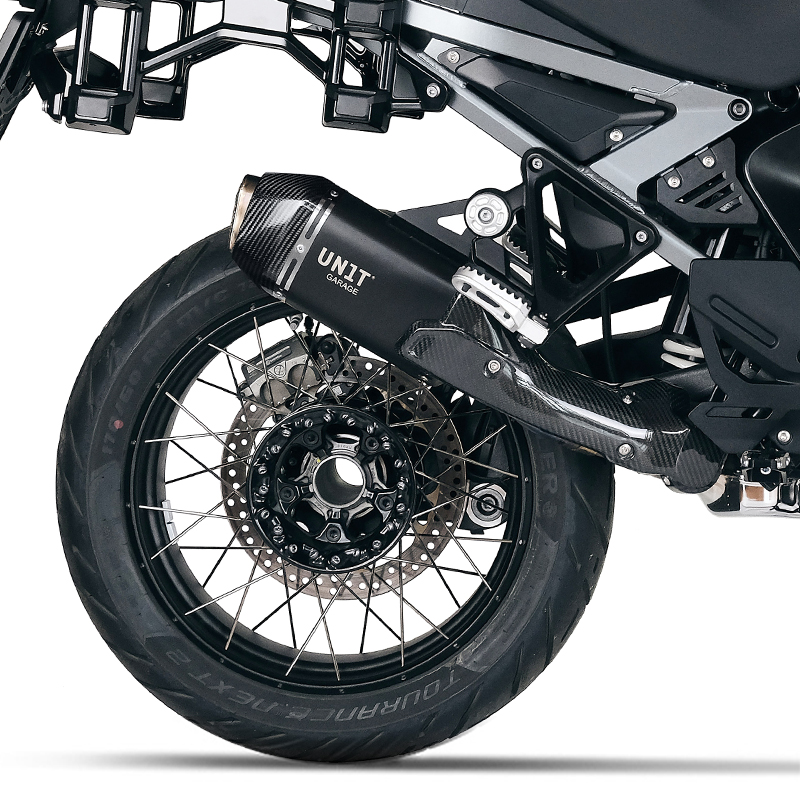 Para la R1300GS queríamos un escape que fuera refinado y elegante, pero también potente. Rendimiento y ligereza: sonido profundo en toda la curva de potencia y gran ahorro de peso. Silenciador homologado fabricado en Titanio con tapa de Carbono. El parallamas de titanio y la tapa del extremo de carbono se pueden quitar para acceder al DB-Killer. Se monta sobre los colectores originales, dejando la válvula de escape y el catalizador de serie. No es necesario reprogramar la ECU ni realizar otras modificaciones. Pesa aproximadamente 0,45 kg menos que el original. Se monta fácilmente en pocos minutos sobre el soporte original, y es compatible con todas las maletas originales o de recambio. El sonido te volverá loco y la entrega...¡también!