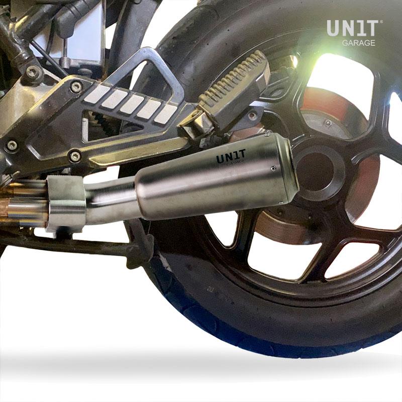 Fantástico silenciador bajo completo con racor de acero inoxidable y terminal de TITANIO.