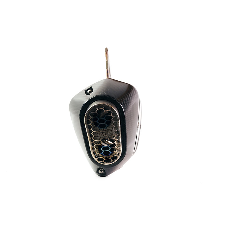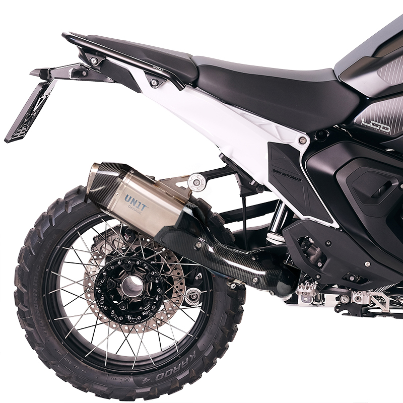 Para la R1300GS ADV queríamos un escape que fuera refinado y elegante, pero también potente. Rendimiento y ligereza: sonido profundo en toda la curva de potencia y gran ahorro de peso. Silenciador homologado fabricado en Titanio con tapa de Carbono. El parallamas de titanio y la tapa del extremo de carbono se pueden quitar para acceder al DB-Killer. Se monta sobre los colectores originales, dejando la válvula de escape y el catalizador de serie. No es necesario reprogramar la ECU ni realizar otras modificaciones. Pesa aproximadamente 0,55 kg menos que el original. Se monta fácilmente en pocos minutos sobre el soporte original, y es compatible con todas las maletas originales o de recambio. El sonido te volverá loco y la entrega...¡también!