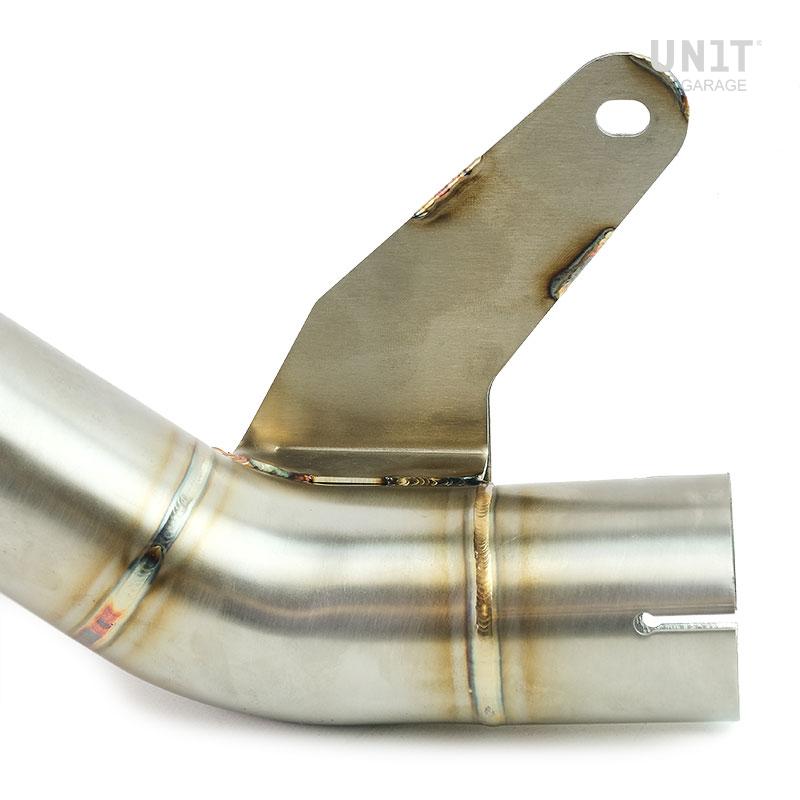 Escape simple con racor de acero inoxidable y silenciador de titanio.