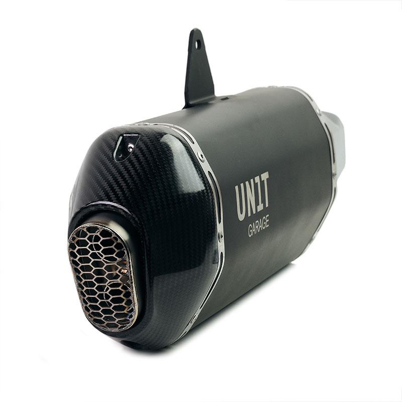Se ofrece en dos versiones: con protección frontal de carbono o con funda original. (en el segundo caso se reutiliza el del escape estándar). No requiere reasignación de la unidad de control. Pesa 3.200 kg, por tanto aproximadamente 1 kg menos que el original. Se monta fácilmente en pocos minutos sobre el soporte original y es compatible con todas las maletas originales o aftermarket. El sonido te volverá loco y la entrega... ¡también!