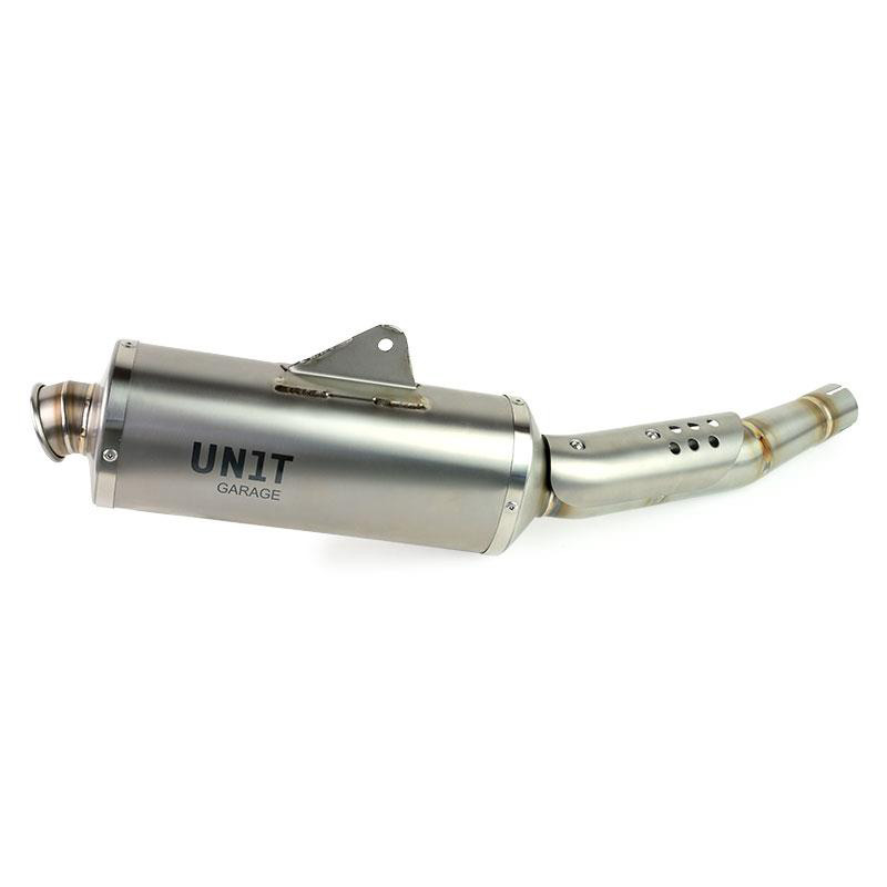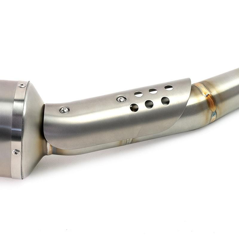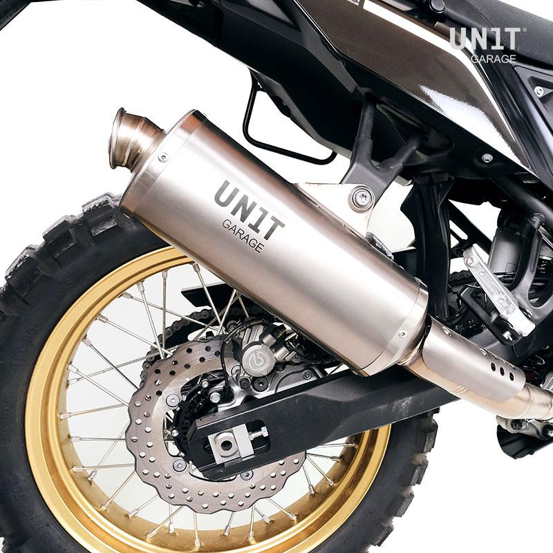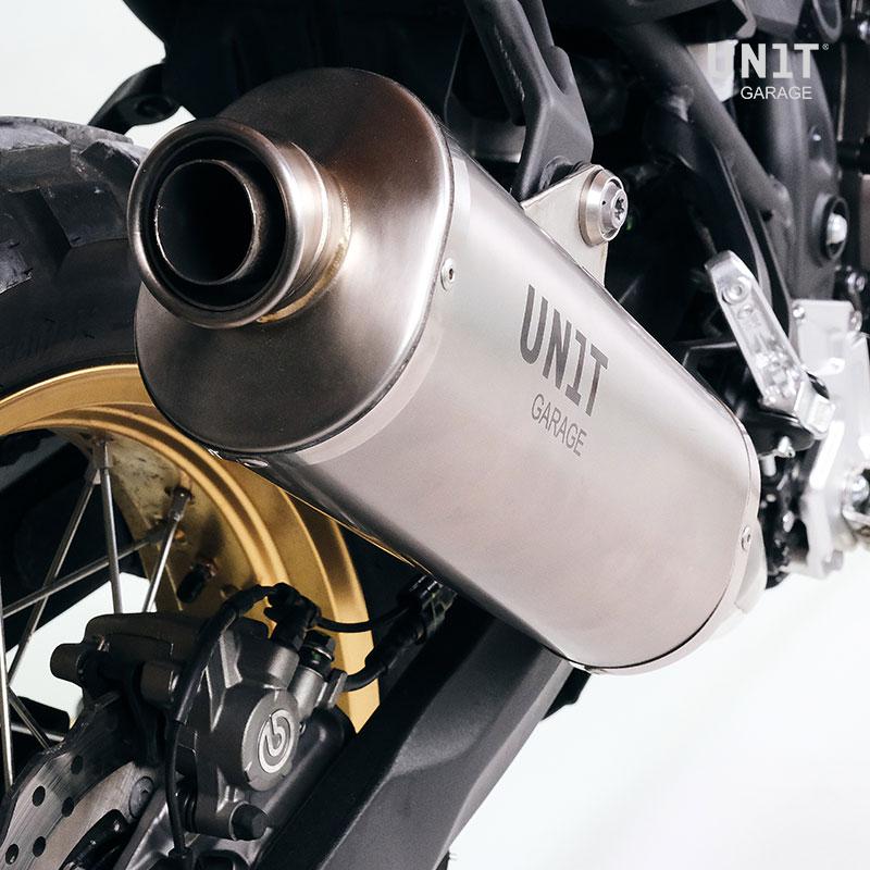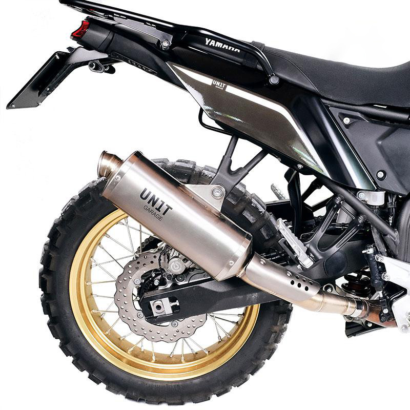 Llevamos a Yamaha en el corazón desde los días del Dakar de París. Queríamos un escape especial, preparado para cualquier aventura... ¡y creemos que lo hemos conseguido! Homologado, con cuerpo silenciador de titanio. Escudo térmico y herrajes de acero inoxidable con soldadura vista en perfecto estilo Rally Raid. Pesa 2.200 kg y tiene un DB-Killer extraíble. Se monta fácilmente sin hacer ningún cambio en la bicicleta. Disponible en titanio negro y natural. El sonido te volverá loco y la entrega... ¡también!
