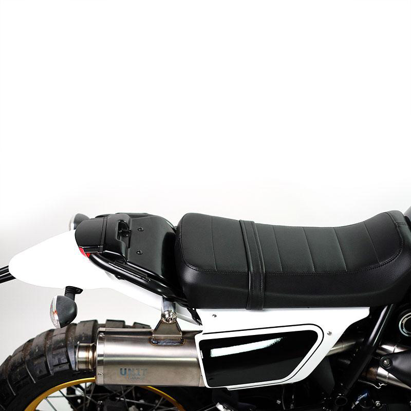 Cubierta del marco fabricada en ABS. Al montar el Fuoriluogo Kit, esta funda de plástico moldeado te permitirá tapar la zona del bastidor trasero y disponer de una amplia zona de carga para el alojamiento de bolsas blandas, cámaras de aire, etc ... al viajar desde solo o en tus salidas todoterreno.