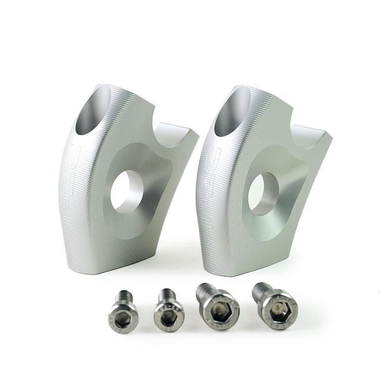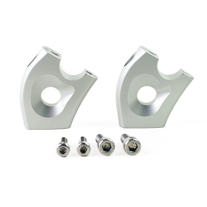¡Si quieres eliminar la sensación de distancia de la dirección típica de los nineT necesitarás estas torretas! Par de torretas de manillar especiales diseñadas y fabricadas por CNC, mecanizadas en aleación de aluminio macizo con acabado plateado. Fáciles de montar en la carcasa original, cambian la posición de conducción del tuyonineT elevando el manillar 10 mm y retrocediendo 30 mm hacia el ciclista. Muy pronto tendrás una posición de conducción más relajada y erguida adaptada a largas distancias. No es necesario sustituir ni alargar ningún cable, se suministran completos con tornillería para su montaje. Se adapta al manillar original y a todos nuestros manillares excepto al manillar Confort.