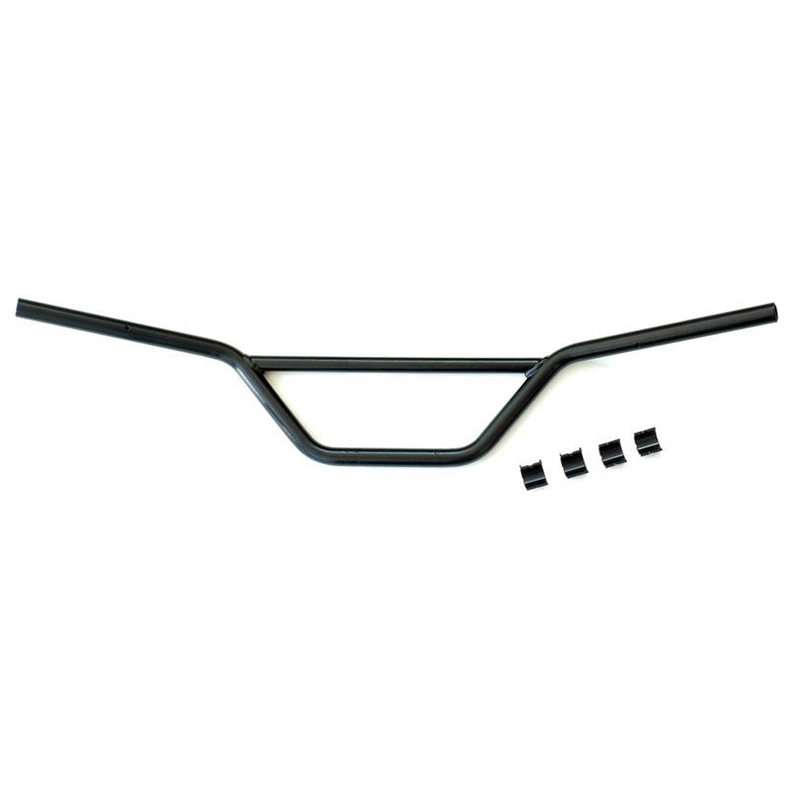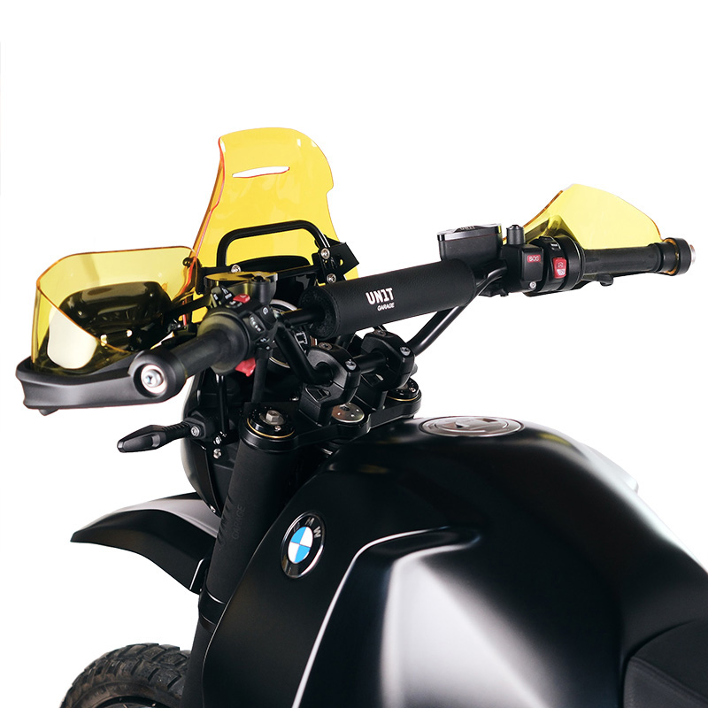 Para la BMW R12 G/S, buscamos un manillar clásico con travesaño y diámetro constante (22 mm). Le da a la moto un aspecto realmente agresivo y una postura de conducción más relajada. Fabricado en acero con acabado en polvo epoxi negro mate, incluye todo lo necesario para su montaje en los elevadores y mandos originales. No requiere modificaciones en los cables ni en los latiguillos de freno.