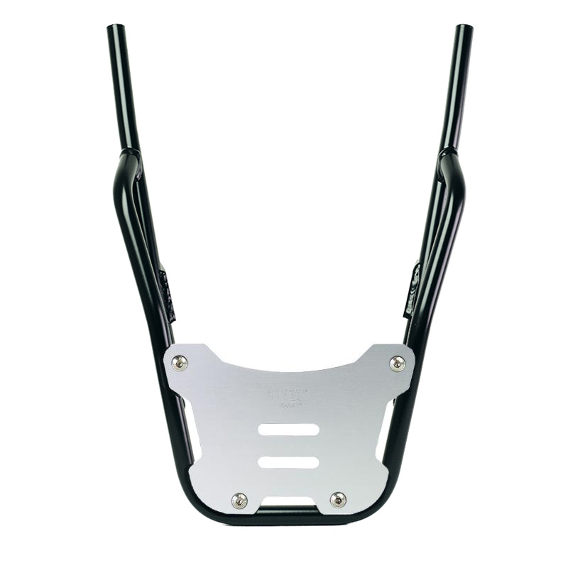 Si quieres montar una maleta rígida o transportar mucho equipaje en tu Honda GB350S, ¡este portaequipajes es perfecto! Complementa la parte trasera e incluye prácticas asas para el pasajero. Robusto y práctico, admite tanto la placa U108 como la placa AL3 para la maleta superior de aluminio mediante los 4 anclajes preinstalados. Disponible con un acabado de polvo epoxi negro mate de alta resistencia.