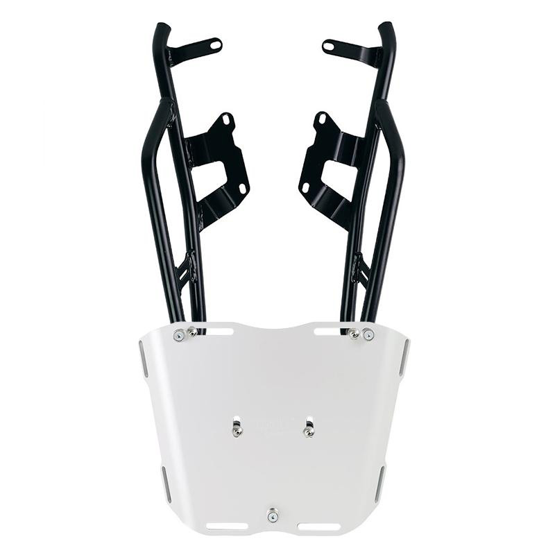 Si quieres viajar con tu nineT con un baúl rígido o con equipaje pesado, ¡esta baca es para ti! De longitud intermedia entre el código: 2014 y el código: 2033, completa la parte trasera y está equipado con cómodas asas para el pasajero. Robusto y práctico, puede alojar tanto la placa codificada: U108 como la placa codificada: AL3 para el topcase de aluminio utilizando las 4 fijaciones predispuestas. Disponible con acabado en polvo epoxi de alta resistencia en color negro mate. También es excelente para tener más espacio de carga con bolsas blandas.