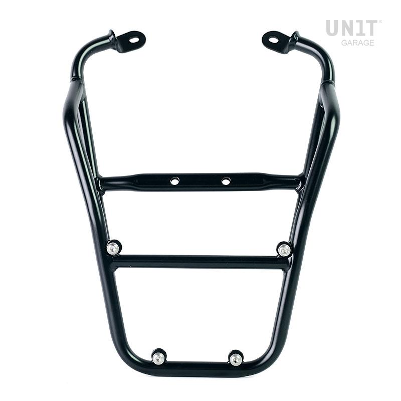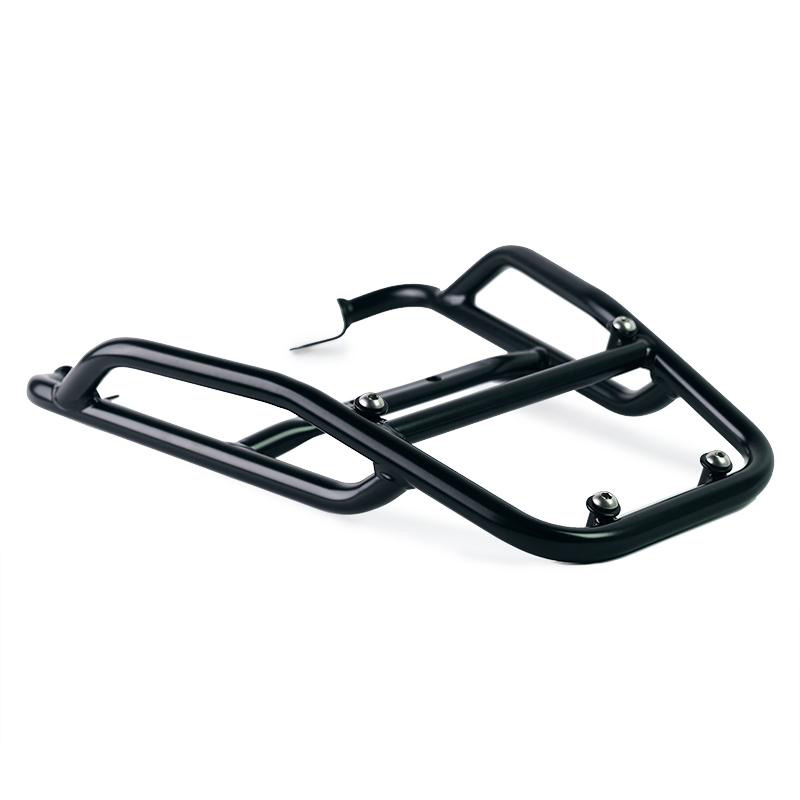 Portaequipajes fabricado en tubo de acero con acabado en polvo epoxi negro mate. Completa la parte trasera y está equipado con asas para el pasajero. Se fija de forma muy sencilla al chasis de la moto mediante los 4 puntos de fijación proporcionados por Fantic Caballero 125-250-500. Robusto y práctico, completa la estética de la moto.