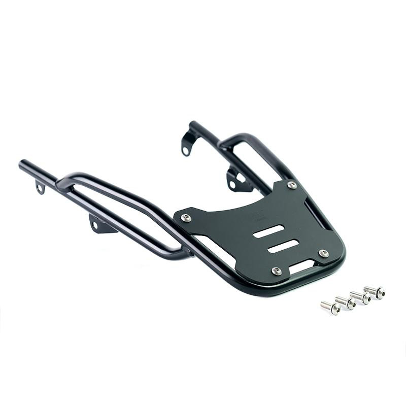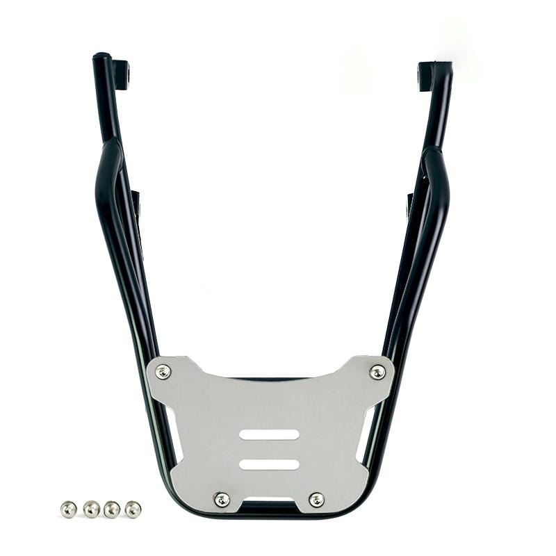 Portaequipajes de acero inoxidable reforzado diseñado para fijación de placas o topcase (Color Negro)