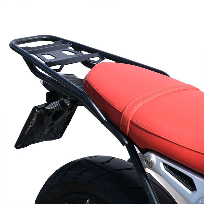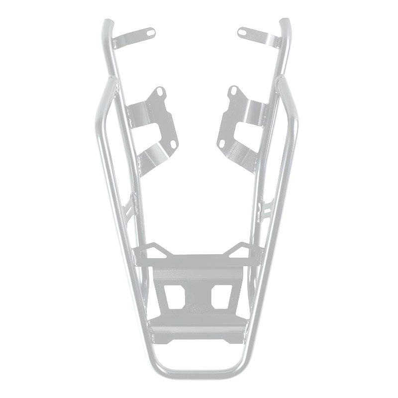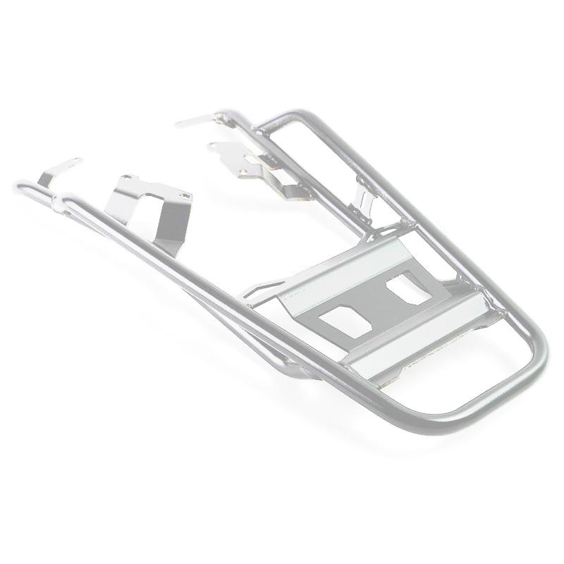 Completa la parte trasera y está equipado con cómodas asas para el pasajero. Robusto y práctico, puede albergar el top case de aluminio. Disponible con acabado plateado o tratado con pinturas en polvo negro mate de alta resistencia. También excelente para tener más superficie de carga con bolsas blandas.