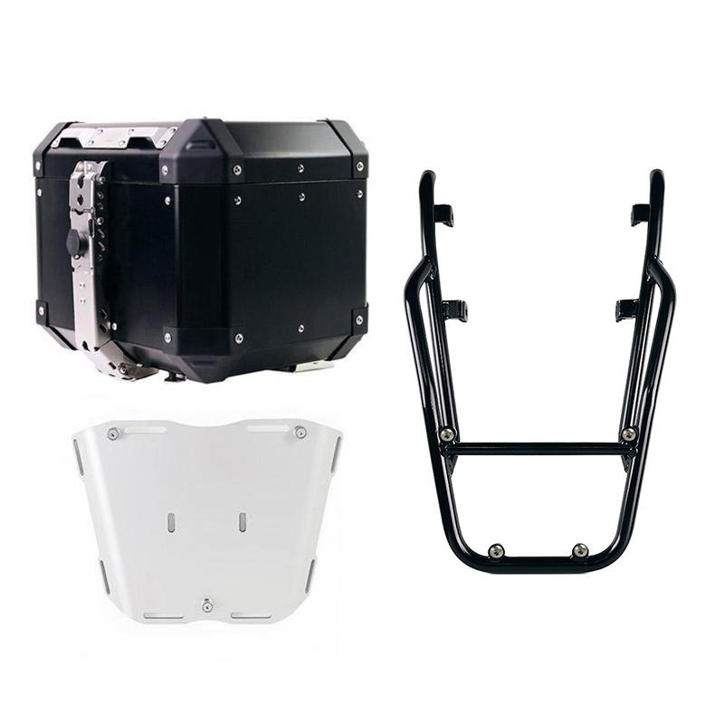 Completa la parte trasera y está equipado con cómodas asas para el pasajero. Robusto y práctico, puede alojar tanto la placa codificadora: U108 como la placa codificadora: AL3 para el top case de aluminio mediante las 4 fijaciones suministradas. Excelente también para tener más superficie de carga para bolsas blandas mediante el montaje de la placa Código: AL13 En esta versión se propone con acabado en polvo epoxi de alta resistencia en color negro mate.