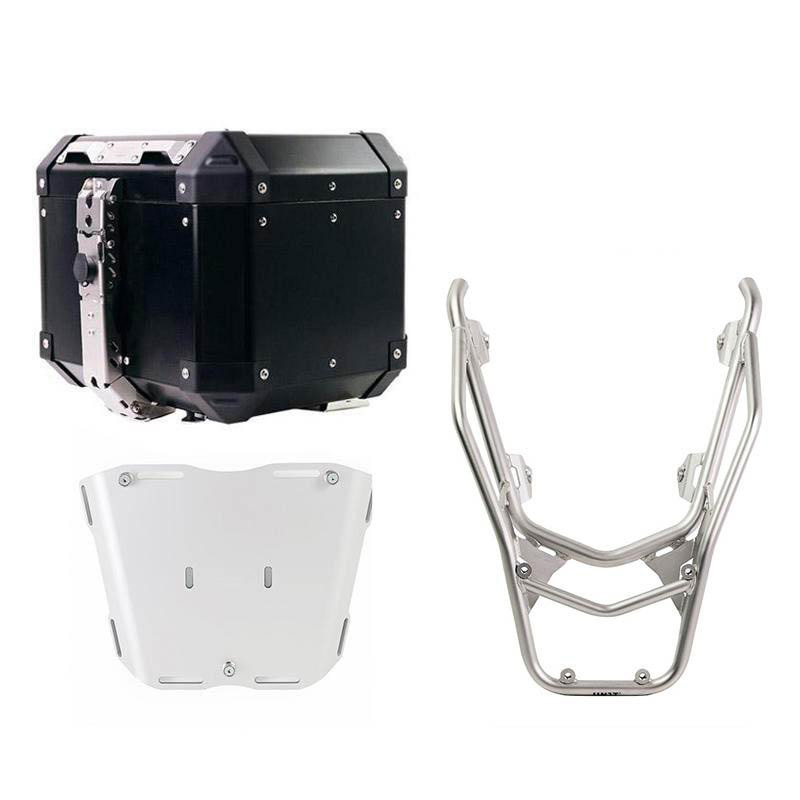 Completa la parte trasera y está equipado con cómodas asas para el pasajero. Robusto y práctico, puede alojar tanto la placa codificadora: U108 como la placa codificadora: AL3 para el topcase de aluminio mediante las 4 fijaciones suministradas. Excelente también para tener más superficie de carga para bolsas blandas mediante el montaje de la placa Código: AL13 En esta versión se propone con acabado en polvo epoxi de alta resistencia en color negro mate.