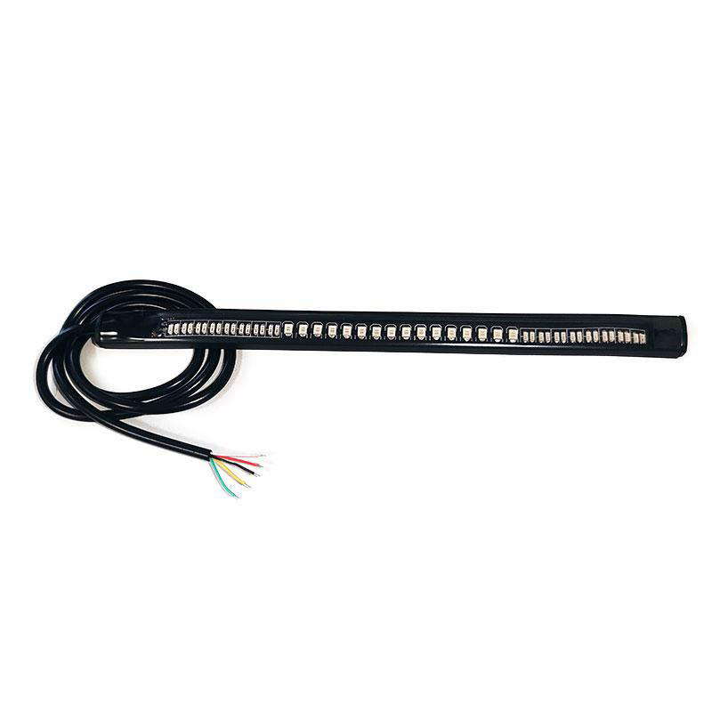Tira de LED iluminada en rojo, que aumenta de intensidad cuando se aplican los frenos (luz de stop) y cambia de color a naranja en los extremos cuando se activan los intermitentes