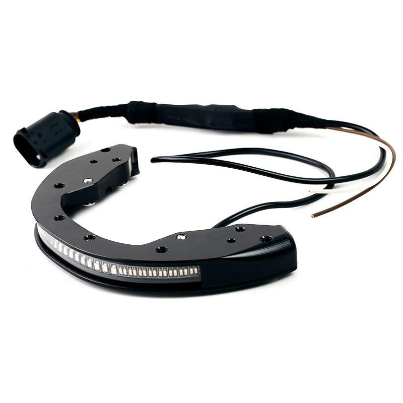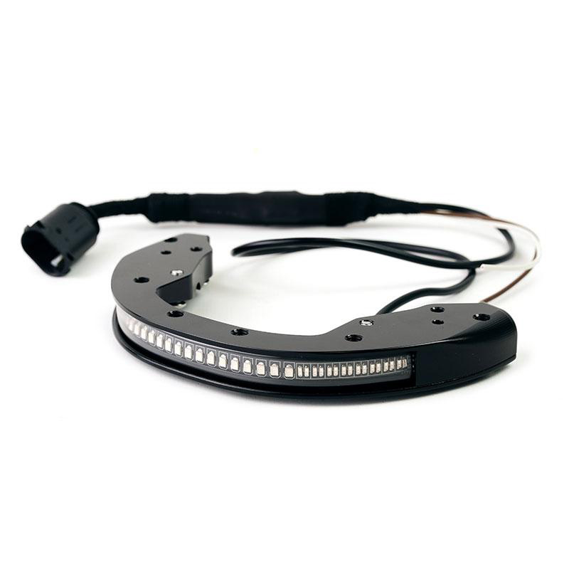 Hecho para nuestro kit Sportail o para construir su especial. Fabricado en aluminio CNC, anodizado en negro, este componente sustituye a los intermitentes y faro originales. Se suministra ya cableado y listo para montar con enchufes compatibles con el sistema eléctrico OEM que se pueden montar en todos los modelos R18. La tira de LED integrada se ilumina en rojo, que aumenta de intensidad cuando se aplican los frenos (luz de stop) y cambia de color a naranja en los extremos cuando se activan los intermitentes (ver vídeo)