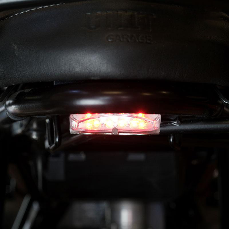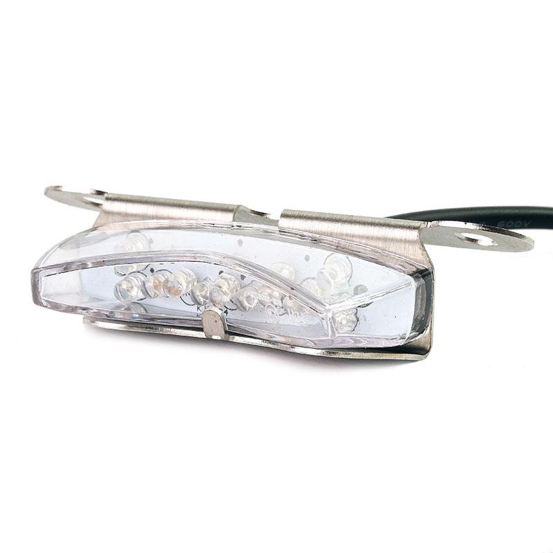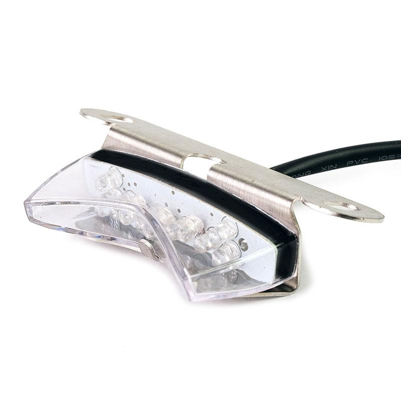 Luz trasera LED homologada de alto rendimiento. Está equipado con luz trasera y luz de freno, se suministra completo con soporte de acero inoxidable para su fijación. Perfecto para construir tu especial.