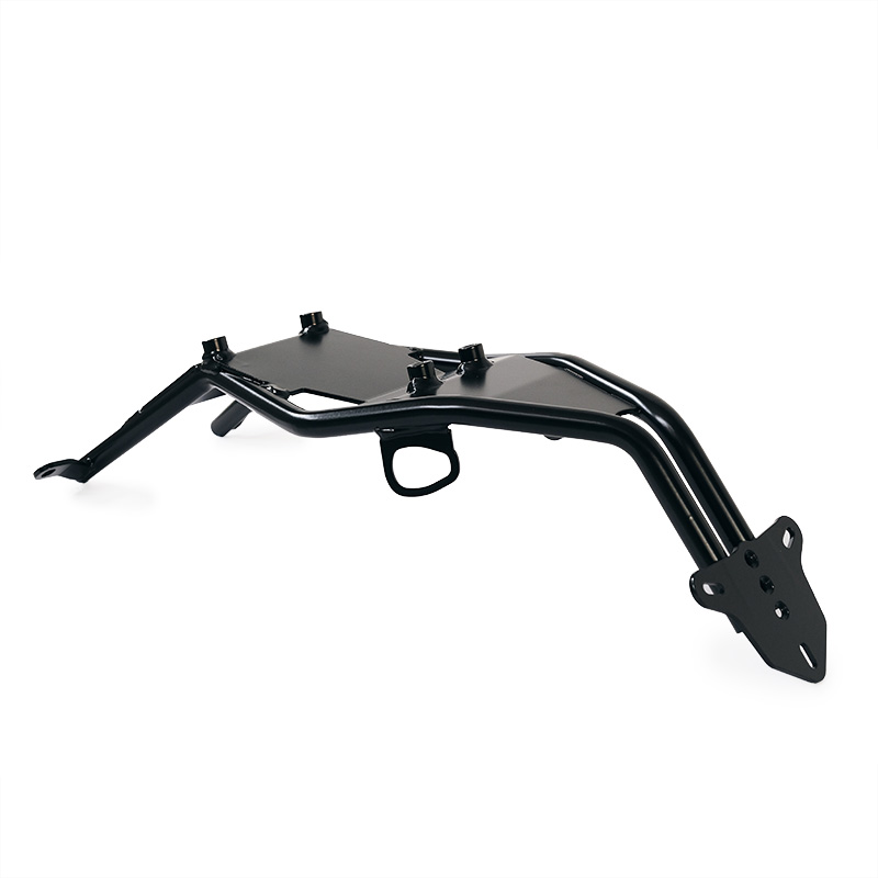 El plástico trasero nos molestaba: el resultado es fantástico, una vez montado es uno con el resto de la moto. Fabricado en tubo de acero recubierto de polvo epoxi negro, completo con soporte listo para alojar la luz de matrícula original. Se fija al chasis de forma muy sencilla y permite cambiar significativamente el carácter y el estilo de la moto en la parte trasera acortando y elevando la matrícula y el faro correspondiente. Completo con soportes para los intermitentes originales (intermitentes no incluidos) y todo lo necesario para su montaje, es compatible tanto con nuestros marcos de bolsos y portaequipajes como con los originales.