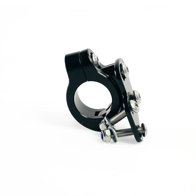 Con este soporte mecanizado por CNC, podrás fijar los faros originales Triumph a nuestro kit Dual Scrambler, o en general, a barras de 25 mm de diámetro. El sistema te permite girar el soporte de fijación, por lo que también puedes montarlo en barras inclinadas. También tendrás diferentes posibilidades girando también el brazo. El soporte también se puede usar para cámaras pequeñas o GoPro
