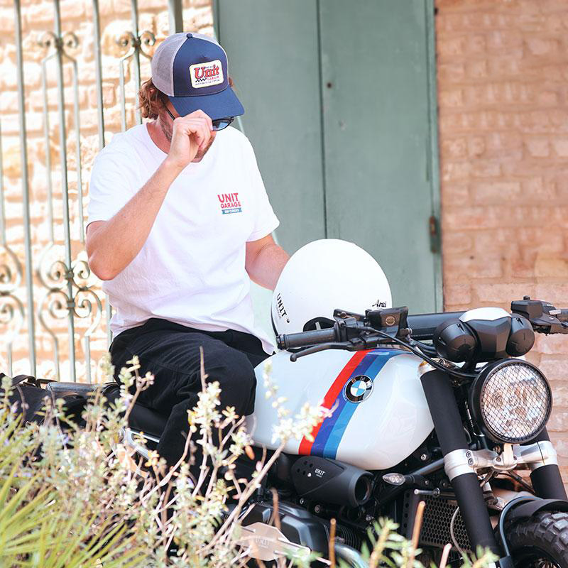- Logotipo de Unitgarage bordado en negro, blanco, rojo y dorado.