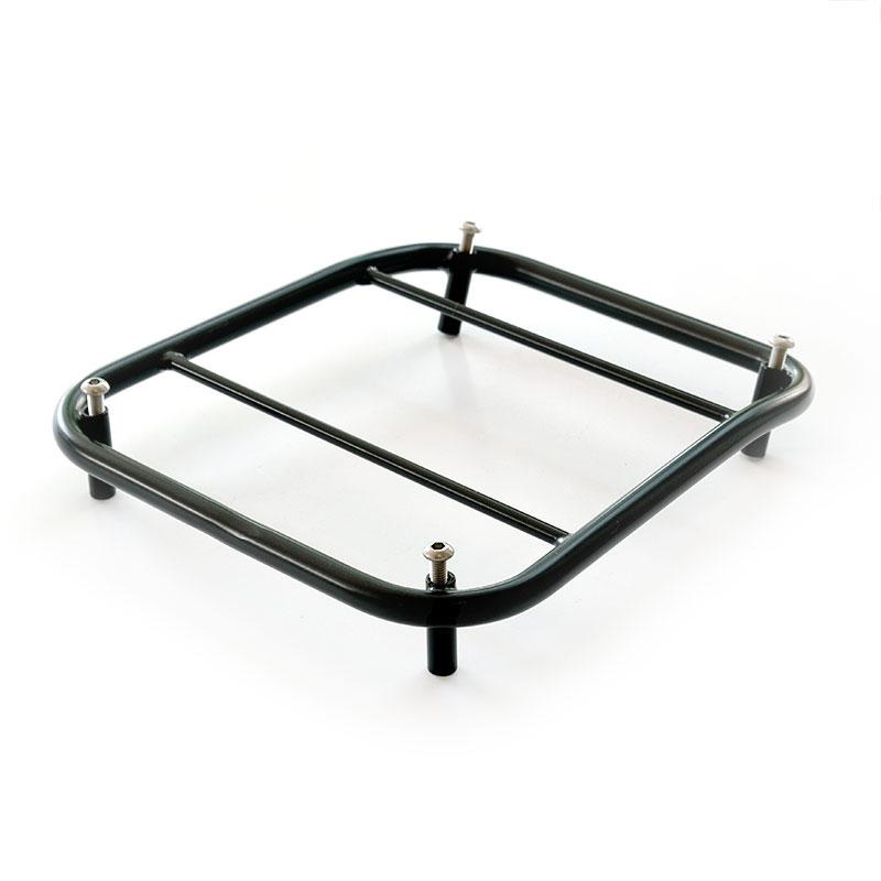 Portaequipajes de acero con acabado en polvo epoxi negro mate, tornillos de fijación.