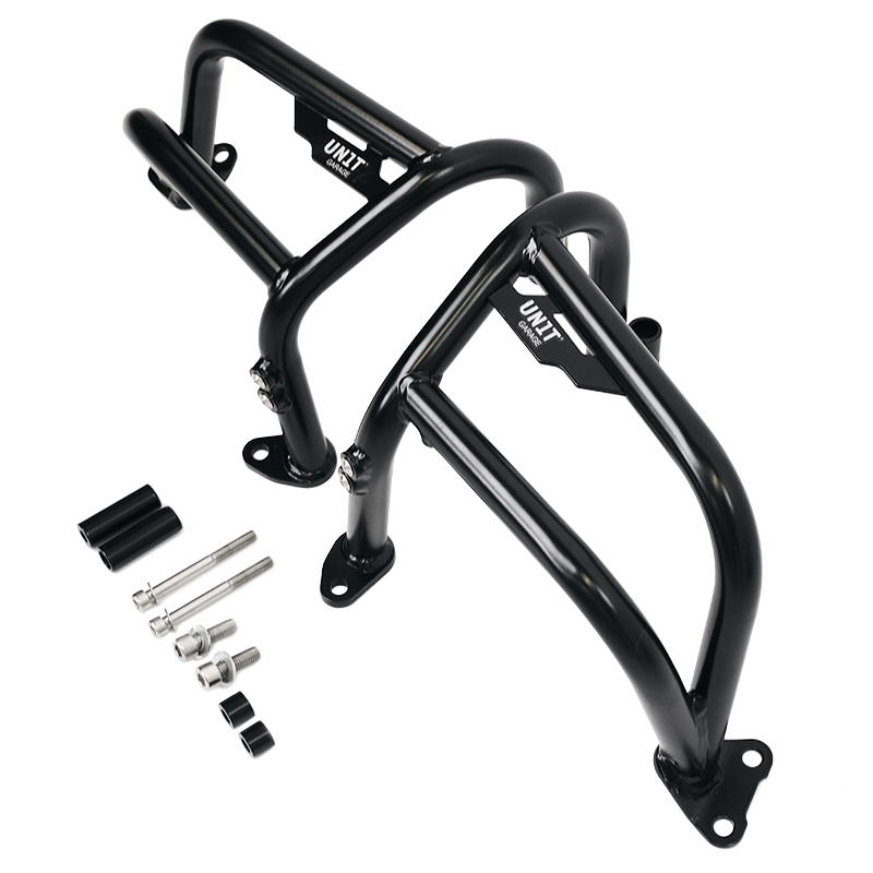 Fabricado en acero con tubo de 25 mm y 2 mm de espesor, tratado con pinturas en polvo de alta resistencia. La mayoría de los trabajos de mantenimiento se pueden realizar sin desmontar la barra. Muy bonitas y elegantes, definen perfectamente las líneas de la moto. Vienen con todo lo necesario incluidas instrucciones de montaje. Integrados en las barras también encontrará insertos soldados roscados M6 para fijar faros adicionales (distancia entre orificios 20 mm)