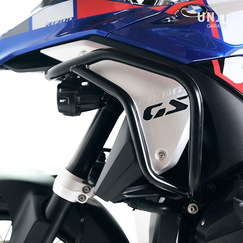 Muy bonitos y elegantes, definen perfectamente las líneas de la moto. Protectores de depósito fabricados en acero con acabado en polvo epoxi negro: excelentes para proteger el depósito pero también los carenados y los radiadores. Se pueden montar con defensas nuestras, de otros fabricantes o con defensas originales BMW. Están fabricados con fijaciones resistentes y se suministran con todo lo necesario, incluidas instrucciones de montaje.