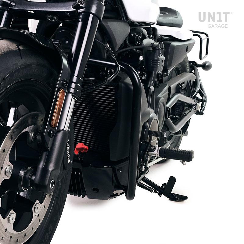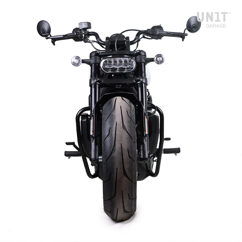 Se integra a la perfección con las líneas de la Harley-Davidson Sportster S, y es muy protectora en caso de caída. Fabricado en tubo de acero de diámetro 25 x 2 mm tratado con pinturas en polvo de alta resistencia.