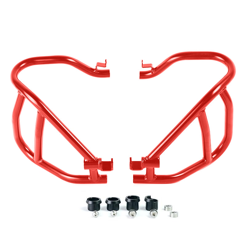 Fabricado en acero con tubo de 25 mm y 2 mm de espesor, tratado con pinturas en polvo de alta resistencia. La mayoría de los trabajos de mantenimiento se pueden realizar sin desmontar la barra. Muy bonitas y elegantes, definen perfectamente las líneas de la moto. Vienen con todo lo necesario incluidas instrucciones de montaje.