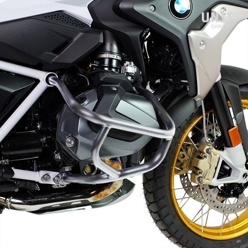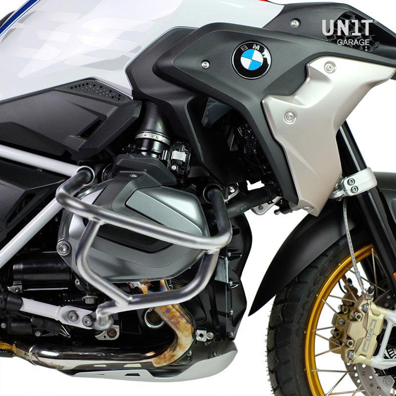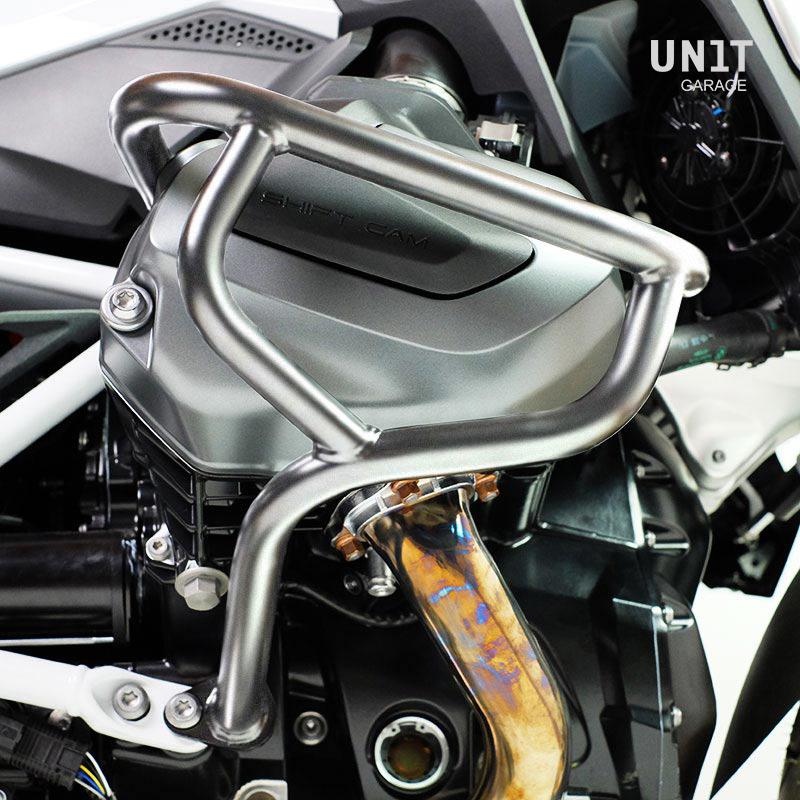 Son las más envolventes y compactas que jamás se hayan diseñado para la LC: mucho más efectivas que las barras de protección tradicionales del mercado, ya que están pivotadas en tres puntos del cuadro de la bicicleta para proteger las preciadas cabezas de su bóxer refrigerado por agua. Se integran perfectamente con el cuadro LC y son muy protectores en caso de caída. Fabricado en acero inoxidable con un acabado idéntico al original. Fáciles de montar, se suministran completos con casquillos de plástico para insertar en el marco y tornillos. La mayor parte del trabajo de mantenimiento se puede realizar sin quitar la barra. Compatibilidad del modelo: R1250 GS - R1250 GS ADV - R1250R