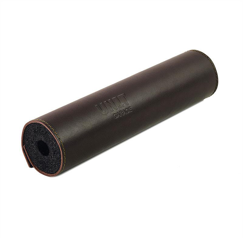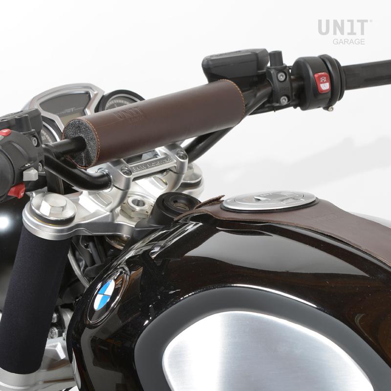 Parachoques fabricado en cuero marrón, se monta muy fácilmente en cualquier travesaño del manillar y protege el rostro en caso de caída.
