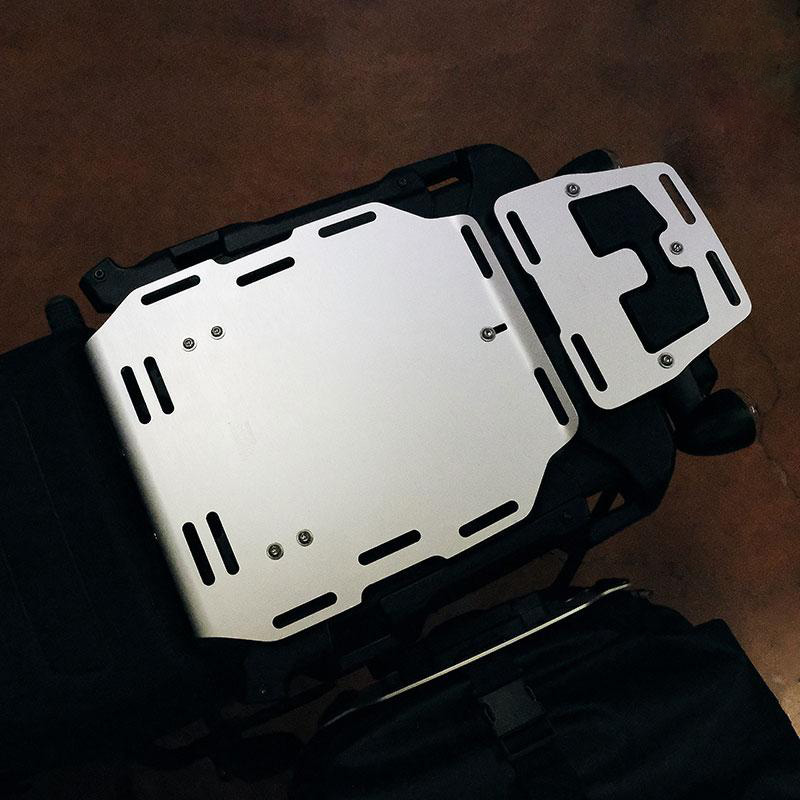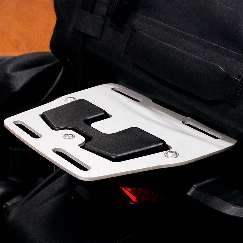 Esta placa se monta solo quitando la manija original del pasajero y hace que la parte trasera sea más agresiva. Suele montarse en combinación con el código 3311 para maximizar la superficie de carga. Fabricado en aluminio anodizado de 4 mm de espesor, está equipado con ranuras para la sujeción de bandas como nuestras bandas UG008. El asiento del pasajero sigue siendo utilizable.