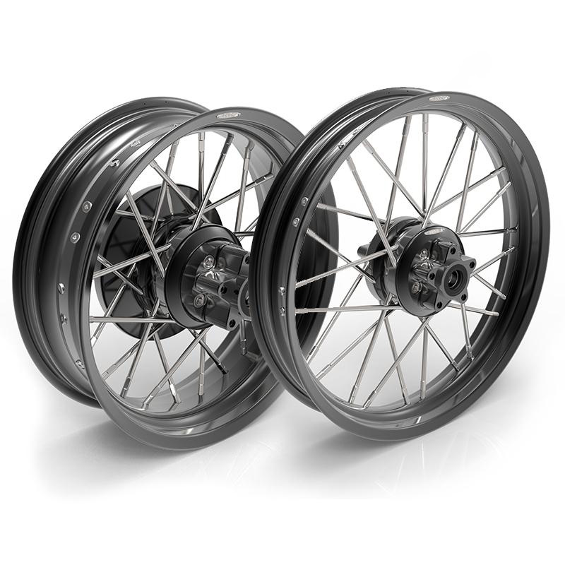 Diseñado y hecho a mano en Italia: un concentrado de técnica y destreza manual que hará que tu bicicleta sea única y exclusiva. Par de ruedas delanteras/traseras totalmente intercambiables con las ruedas originales y compatibles con la moto de serie sin tener que cambiar ningún componente original. Se reutilizan sus discos de freno actuales, tornillos y llantas originales.