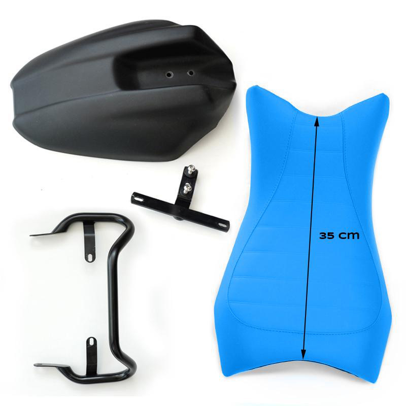 Se adapta perfectamente a la parte trasera de la moto y a nuestro asiento individual código 1602, y se puede montar con el portamatrículas original.
